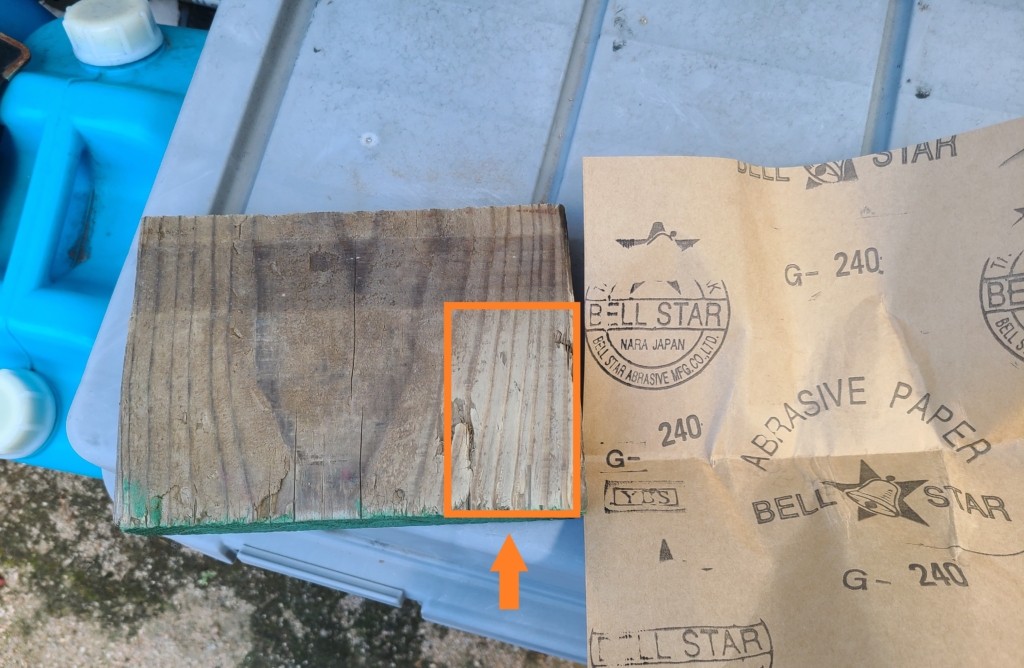 まずは、杉の木端をサンドぺーパー240で研き、、、